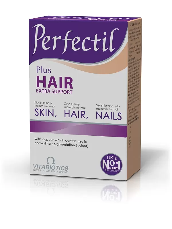 Το συμπλήρωμα διατροφής Perfectil Plus Hair της Vitabiotics είναι μια εξειδικευμένη σύνθεση που εφοδιάζει τους θύλακες των τριχών με πληθώρα θρεπτικών συστατικών για όμορφα, πλούσια, δυνατά και λαμπερά μαλλιά. Το κολλαγόνο, τα αμινοξέα, η βιοτίνη και το εκχύλισμα horsetail (φυσική πηγή πυριτίου) βοηθούν στη δόμηση της τρίχας, αποτρέπουν τη λέπτυνση και ενισχύουν την αντοχή. Απαραίτητα ιχνοστοιχεία, όπως ο σίδηρος, το σελήνιο και ο ψευδάργυρος συμβάλλουν στην καλή κατάσταση των μαλλιών και αποτρέπουν τυχόν ελλείψεις στον οργανισμό που μπορεί να προκαλέσουν τριχόπτωση. Το Colourel™ Blend είναι ένα εξειδικευμένο μίγμα συστατικών με χαλκό που συμβάλλει στη διατήρηση του φυσικού χρώματος των μαλλιών. Το Perfectil Plus Hair παρέχει εξειδικευμένη υποστήριξη στα μαλλιά φροντίζοντας παράλληλα το δέρμα και τα νύχια, για μια ολοκληρωμένη όμορφη εμφάνιση.