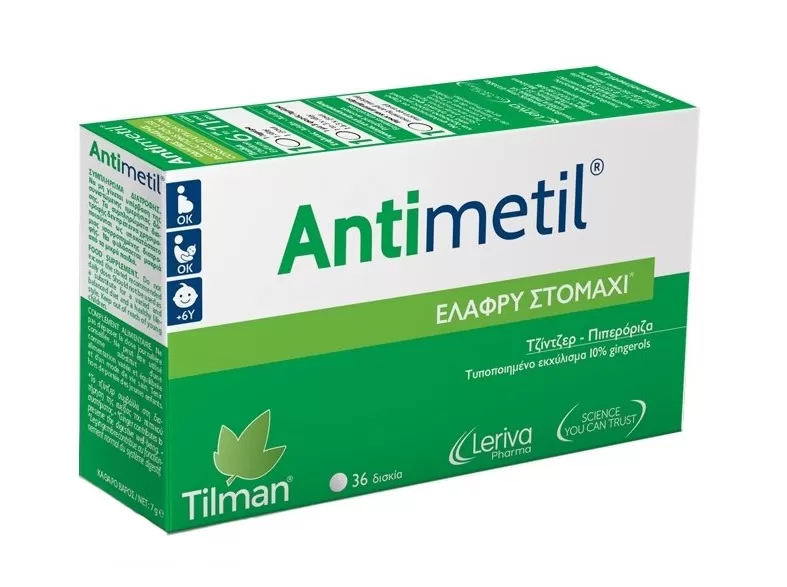 Antimetil με Τζίντζερ & Πιπερόριζα για Ελαφρύ Στομάχι με Αντιεμετικές Ιδιότητες 36 δισκία