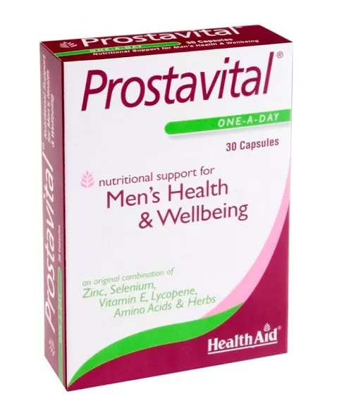 Το Prostavital της Health Aid είναι ειδικός συνδυασμός από βιταμίνες, μέταλλα, αμινοξέα και φυτικά εκχυλίσματα τα οποία δρουν συνεργιστικά, για μέγιστο αποτέλεσμα.