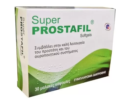 Το SUPER PROSTAFIL σε μορφή softgel είναι ένα συμπλήρωμα διατροφής το οποίο συμβάλλει στη καλή λειτουργία του προστάτη και του ουροποιητικού συστήματος.