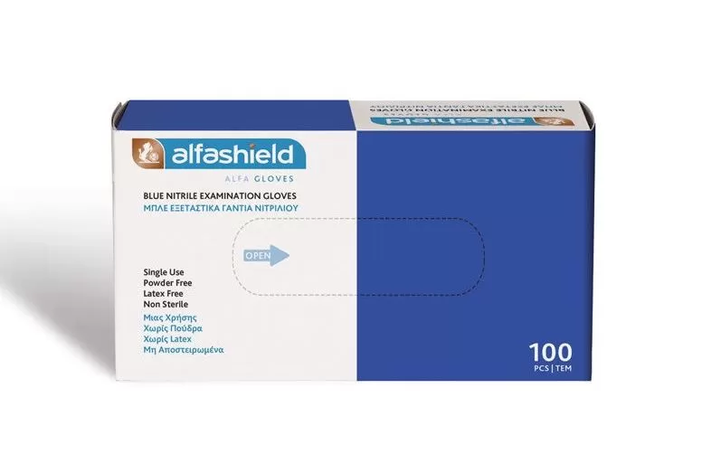 AlfaShield - Εξεταστικά Γάντια Νιτριλίου μιας χρήσης ΜΠΛΕ XLarge - 100τμχ