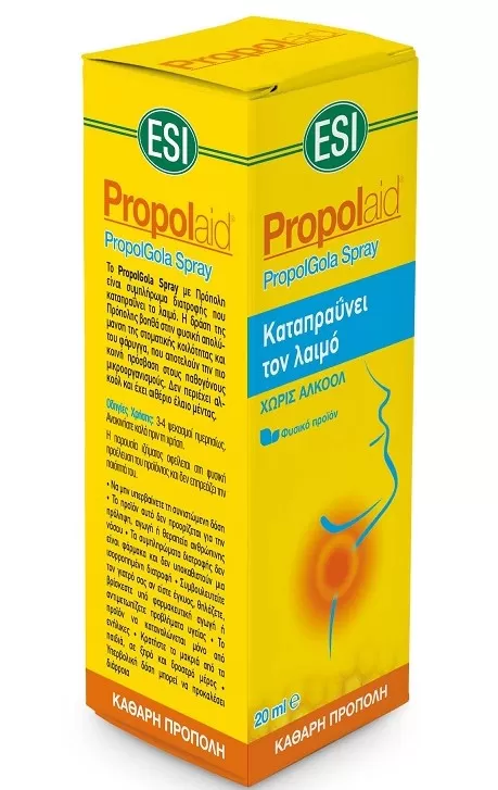 Το PropolGola Spray με Πρόπολη είναι συμπλήρωμα διατροφής που καταπραΰνει τον λαιμό. Η δράση της Πρόπολης βοηθά στη φυσική απολύμανση της στοματικής κοιλότητας και του φάρυγγα, που αποτελούν την πιο κοινή πρόσβαση στους παθογόνους μικροοργανισμούς. Κατάλληλο για την αντιμετώπιση της αφθώδους στοματίτιδας ή κοινώς «άφθες», που είναι η συχνότερη πάθηση του στόματος. Δεν περιέχει αλκοόλ και έχει αιθέριο έλαιο μέντας.