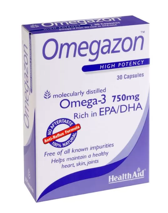 - To Οmegazon (Ωμεγα3 + ζωή) της Health Aid είναι τριπλής μοριακής απόσταξης, δηλαδή ειδικά επεξεργασμένο ώστε να απαλλαγεί από διοξίνες, ιζήματα και βαρέα μέταλλα (μόλυβδο, υδράργυρο) για τα οποία έχουν κατηγορηθεί τα περισσότερα νερά του πλανήτη.