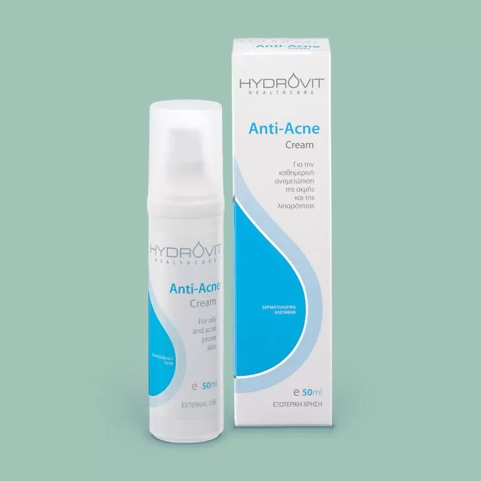 Η HYDROVIT Anti-Acne Cream είναι ένα προϊόν του οποίου η σύνθεση έχει βασιστεί σε ένα σύμπλοκο που προκύπτει από τη μικρο-ενκαψυλίωση του Tea Tree Oil (Melaleuca alternifolia) σε Κυκλοδεξτρίνη. Το σύμπλοκο αυτό συνδυάζει την αντιφλεγμονώση και αντιμικροβιακή δράση του Tea Tree Oil με τη σμηγματορυθμιστική δράση της Κυκλοδεξτρίνης.