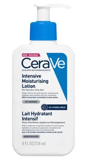 Η Intensive Moisturising Lotion της Cerave είναι μία ενυδατική λοσιόν που βοηθά στην αποκατάσταση του επιδερμιδικού φραγμού, προσφέρει διαρκή ενυδάτωση και καταπραΰνει την επιδερμίδα με κνησμό που οφείλεται στην ξηρότητα.