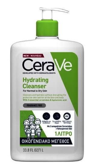 Το CeraVe Hydrating Cleanser, που έχει δημιουργηθεί μαζί με δερματολόγους, καθαρίζει και ενυδατώνει αποτελεσματικά χωρίς να διαταράσσει τον επιδερμιδικό φραγμό.