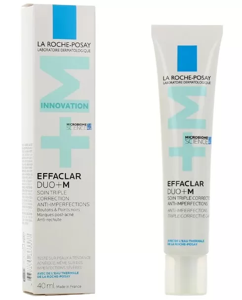 Η Εffaclar Duo+M της La Roche-Posay είναι μια τριπλή διορθωτική φροντίδα για το λιπαρό δέρμα με τάση ακμής: μαύρα στίγματα, ατέλειες και σημάδια μετά από ακμή. Ακόμα και σε σοβαρές περιπτώσεις. Δοκιμασμένο σε όλους τους φωτότυπους. Νέα επιστημονική ανακάλυψη: στο μικροβίωμα του δέρματος, τα βακτήρια που προκαλούν τις ατέλειες της ακμής αποτελούνται από υπότυπους, που ονομάζονται φυλότυποι. Η έρευνα της La Roche-Posay ανέδειξε ότι η δημιουργία της ακμής προκαλείται λόγω της έλλειψης ποικιλότητας ανάμεσα στους φυλοτύπους και της επικράτησης του φυλοτύπου ΙΑ1. ΚΑΙΝΟΤΟΜΙΑ - το Νέο ενεργό συστατικό Phylobioma, με την δύναμη της επιστήμης του μικροβιώματος, έχει αποδεδειγμένη αποτελεσματικότητα στις ατέλειες του λιπαρού δέρματος με τάση ακμής καθώς στοχεύει στην πηγή των ατελειών, τον φυλότυπο ΙΑ1. Με αποδεδειγμένη αποτελεσματικότητα σε 8 ώρες. Κατάλληλο από 10 ετών.