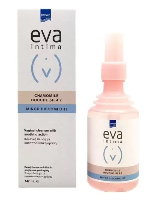 Το Eva Douche Chamomile είναι ειδικά σχεδιασμένη κολπική πλύση μίας χρήσης, για τον αποτελεσματικό καθαρισμό του κόλπου από τυχόν εκκρίσεις ενώ με τα εκχύλισμα χαμομηλιού που περιέχει προσφέρει άμεση ανακούφιση από τα συμπτώματα του κνησμού,του καύσου και της ερυθρότητας του κολπικού βλεννογόνου που μπορεί να οφείλονται σε ένα απλό ερεθισμό ή σε κολπίτιδα οποιασδήποτε αιτιολογίας