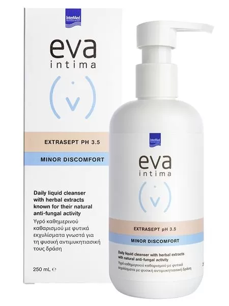 Το Eva Intima Wash Extrasept είναι απαλό υγρό καθημερινού καθαρισμού της ευαίσθητης περιοχής χωρίς σαπούνι, ειδικά σχεδιασμένο για να προσφέρει ανακούφιση και προστασία ιδίως σε περιπτώσεις λοιμώξεων ή υποτροπών οφειλόμενων σε μύκητες καθώς συνδυάζει την αντιμυκητιασική, αντιμικροβιακή και καταπραϋντική δράση βοτάνων όπως το θυμάρι,το φασκόμηλο και το αρκτιο τρίλοβο με την επουλωτική και αναπλαστική δράση του βοτάνου αζαντιράκτα.