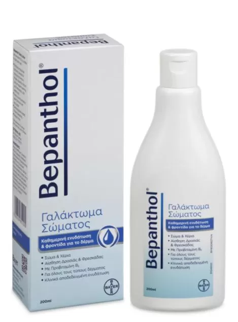 Γαλάκτωμα σώματος Bepanthol της Bayer με προβιταμίνη Β5, κατάλληλο για την καθημερινή περιποίηση του δέρματος.