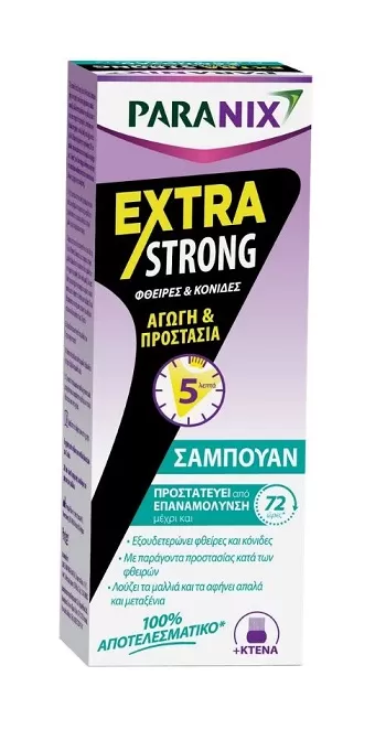 Το Paranix Extra Strong Treats & Protects Shampoo έχει αποδειχθεί 100% αποτελεσματικό έναντι των φθειρών του τριχωτού της κεφαλής σε 5 λεπτά και προστατεύει από πιθανές επαναμολύνσεις.