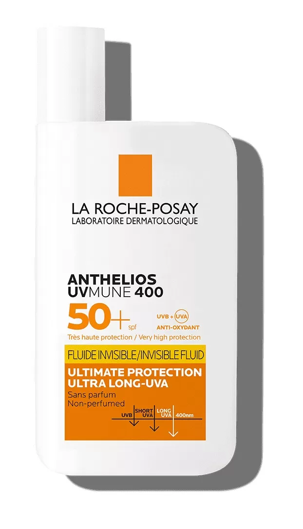ANTHELIOS UVMUNE 400 INVISIBLE FLUID SPF50+ ΧΩΡΙΣ ΑΡΩΜΑ: Με MEXORYL400, το πιο αποτελεσματικό αντηλιακό φίλτρο κατά των πιο επιβλαβών ακτίνων UV: ULTRA ΜΑΚΡΕΣ UVA*. Απόλυτη προστασία (UVB + UVA + ULTRA ΜΑΚΡΕΣ UVA) κατά της βαθιάς κυτταρικής βλάβης. Δοκιμασμένο σε ευαίσθητο, αντιδραστικό και μη ανεκτικό δέρμα. Κατάλληλο για όλους τους τύπους δέρματος, όλους τους φωτότυπους. Χωρίς άρωμα.