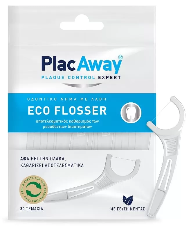 Νέο Plac Away ECO FLOSSER οδοντικό νήμα με λαβή για αποτελεσματικό καθαρισμό των μεσοδόντιων διαστημάτων. Αφαιρεί την πλάκα, καθαρίζει αποτελεσματικά. Για καθαρά χαμόγελα εύκολα, πάντα & παντού. Βολικό για χρήση 'on the go' σε συσκευασία που ξανακλείνει.