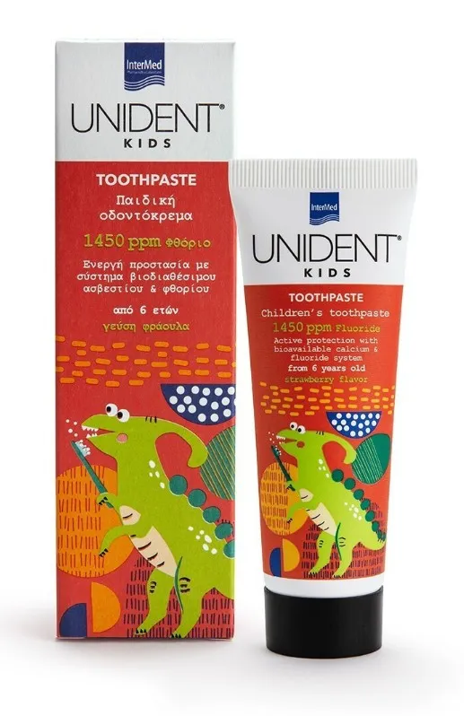 Η νέα Unident Kids Τοοthpaste 1450 ppm είναι ειδικά σχεδιασμένη φθοριούχος οδοντόπαστα για την καθημερινή προστασία και την ενδυνάμωση των ευαίσθητων παιδικών δοντιών.
