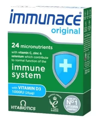 Το συμπλήρωμα διατροφής Immunace της Vitabiotics είναι ένας μοναδικός συνδυασμός ισχυρών αντιοξειδωτικών και απαραίτητων θρεπτικών συστατικών που βοηθούν στην άμυνα του οργανισμού, εμποδίζοντας τη φθορά των κυττάρων και βοηθώντας τον οργανισμό να αντισταθεί στις μολύνσεις και τα κρυολογήματα.