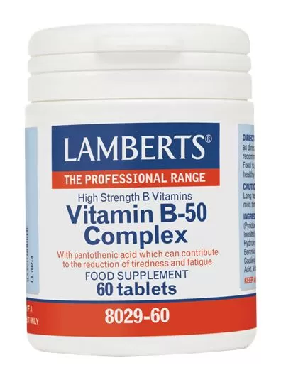 To B-50 Complex της Lamberts, αποτελεί μια εξειδικευμένη διατροφική φόρμουλα υψηλής ισχύος που παρέχει το σύνολο των βιταμινών του συμπλέγματος Β. Αρκετές από τις βιταμίνες του συμπλέγματος Β συμβάλλουν: