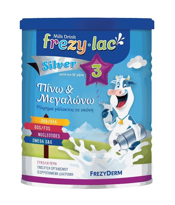 Το FREZYLAC SILVER 3 είναι ρόφημα αγελαδινού γάλακτος σε σκόνη, κατάλληλο για τη διατροφή του βρέφους μετά τον 12° μήνα και αποτελεί την ιδανική τροφή ως μετάβαση από τον θηλασμό ή από το FREZYLAC SILVER 2.